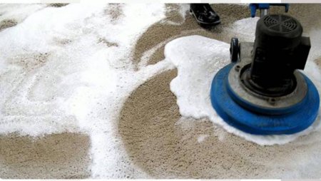 Замачивание ковра производится в специальном растворе на основе ПАВ, трилонов, нейтральных экологически безопасных растворителей. В процессе замачивания ковер вычесывается грубой щеткой, приподнимается затоптанный ворс. Перед замачиванием, в случае надобности, при наличии пятен и сильного загрязнения ковров применяются пятновыводители. Обработка локальных загрязнений и выведение пятен производится технологом вручную. В сложных случаях, если полное удаление невозможно технологически, то пятновыводка проводится до момента, пока не наступит порог риска порчи изделия.Следующий шаг — непосредственно стирка ковра. Точнее влажная чистка ковра с помощью специального оборудовании. Ковер обрабатывается химсредствами с обеих сторон и стираются с помощью щёток разной жесткости. Для стирки используются специальные моющие средства для ковров, экологичные и гипоаллергенные, а при необходимости — пятновыводители и удалители запаха. Заключительным этапом стирки ковра является тщательное ополаскивание ковра чистой водой с обеих сторон. Технология двухсторонней стирки ковров обеспечивает основательное очищение ворса и основания ковра.